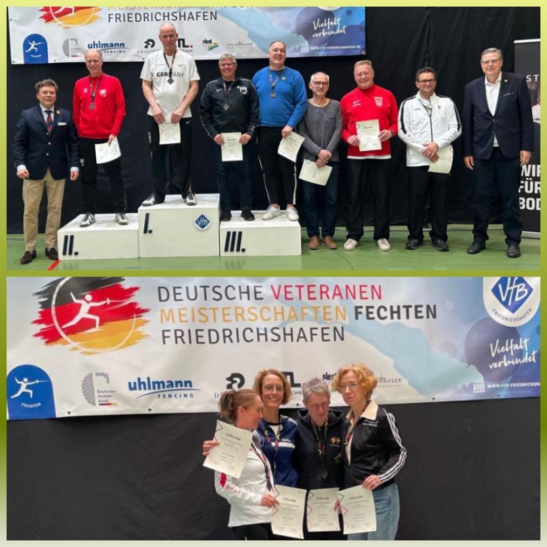 Bei den Deutschen Fechtmeisterschaften der Veteranen am 26. Und 27. April in Friedrichshafen holten Hilke Kollmetz und Hans-Martin Raeker vom Hanseatischen Fechtclub Lübeck insgesamt drei Meistertitel.