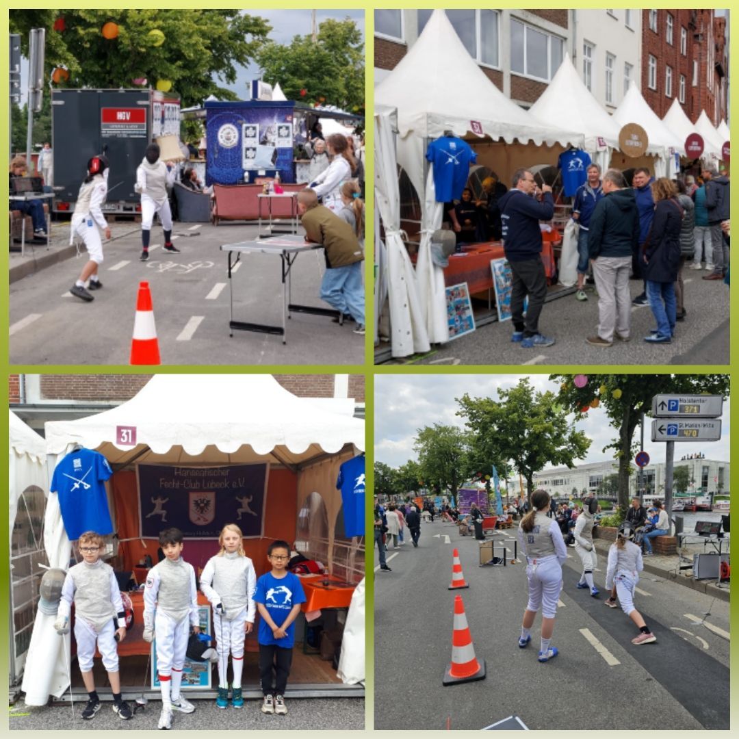 Das Hanse-Kultur-Festival zog auch dieses Jahr viele Besucher an. Auch die Lübecker Fechter hatten nach dem Erfolg 2022 wieder einen Stand gemietet und boten dem interessierten Publikum durchgehend Fechtvorführungen. Am Pavillon lag neben Info-Material auch Fechtausrüstung zum Schauen und Anfassen bereit, auch an der Stoßwand konnte man sich versuchen. Die Fechter und Helfer haben sich und den HFCL toll an den beiden Tagen präsentiert und bei so manchem wurde sicher Interesse für diesen Sport geweckt.